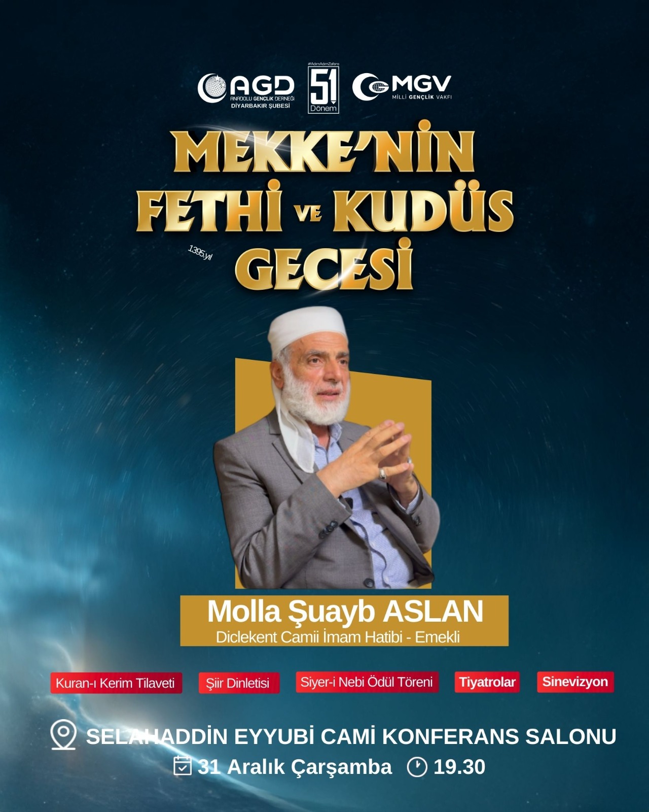 AGD Diyarbakır Şubesi tarafından yapılacak program ise 31 Aralık Çarşamba günü saat 19.30’da Selahaddin Eyyubi Camisi Konferans Salonu’nda gerçekleştirilecek.