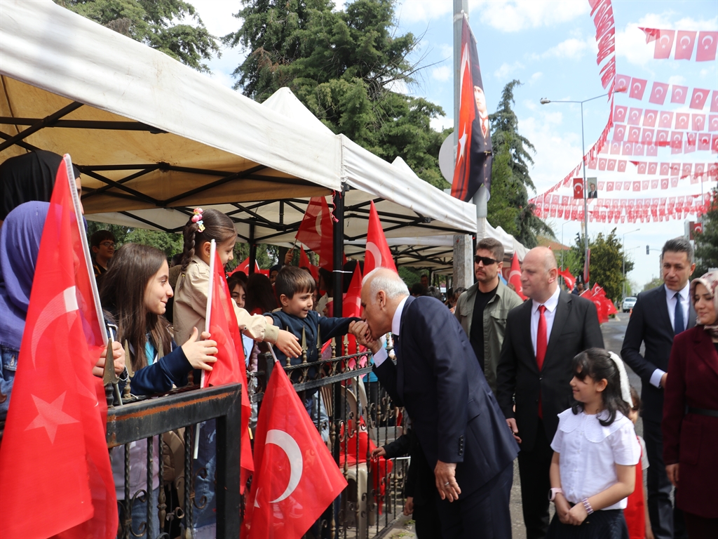 Programda konuşan İl Milli Eğitim Müdürü Salih Sadoğlu, “Bugün sadece bir bayramı değil, milletimizin kendi kaderine sahip çıktığı iradesini tüm dünyaya ilan ettiği tarihi bir dönüm noktasında idrak ediyoruz. Bu anlamlı günü çocuklara arman eden Gazi Mustafa Kemal Atatürk’ün bize verdiği en büyük mesaj şudur. Gelecek çocuklarımızın ellerinde yükselecektir” dedi.