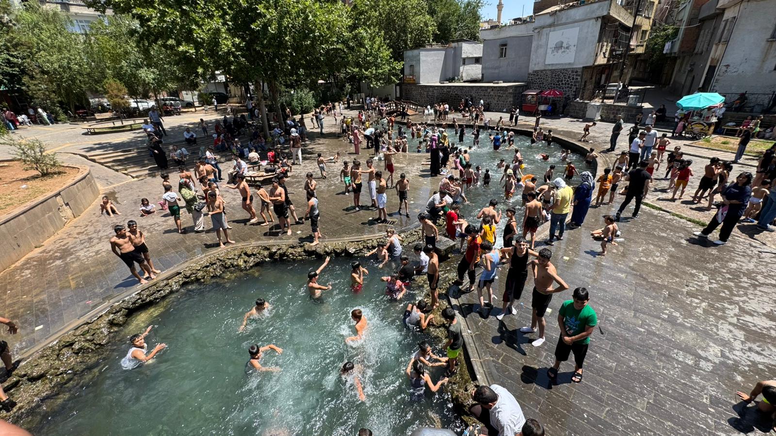 Tarihi mekanlar, cadde ve sokaklar boş kalırken, bazı vatandaşlar gölgelik alanlara yönlendi. Bazıları ise serinlemek için park ve bahçeleri tercih etti. Çocuklar ise tehlikeli ve yasak olmasına rağmen Sur ilçesindeki tarihi Anzele Parkı’nın süs havuzunda serinledi. Bir marketin dondurma dolabının üzerinde kedilerin serinlediği anlar ise cep telefonuyla görüntülendi.