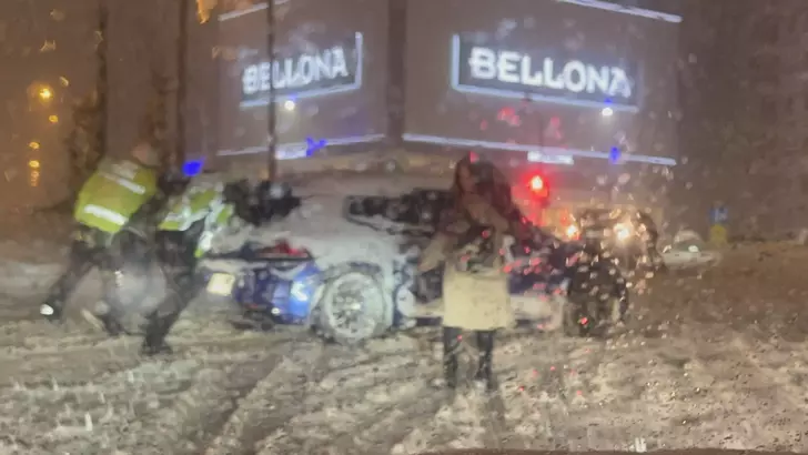 TRAFİK POLİSLERİ YOLDA KALAN ARAÇLARI İTEREK SÜRÜCÜLERE YARDIMCI OLDU