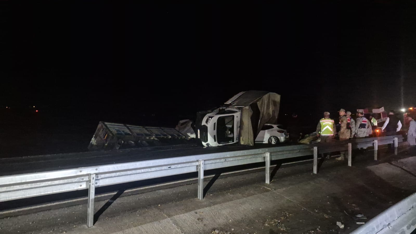 Plakaları öğrenilemeyen 2 otomobil, TIR, kamyonet ve minibüs çarpıştı. Zincirleme kazanın ardından TIR, tarlaya devrilirken kamyonet bir otomobilin üzerine yan yattı. İhbarla bölgeye AFAD, sağlık, itfaiye, polis ve jandarma ekipleri sevk edildi. Yapılan kontrolde araçlardaki 3 kişinin hayatını kaybettiği belirlendi. Araçlardaki 14 yaralı ilk müdahalenin ardından ambulanslarla kentteki hastanelere kaldırıldı. Güvenlik güçleri kontrollü karayolunda kontrollü geçiş sağlarken, cenazeler de işlemlerinin ardından morga götürüldü. Kazayla ilgili soruşturma başlatıldı.