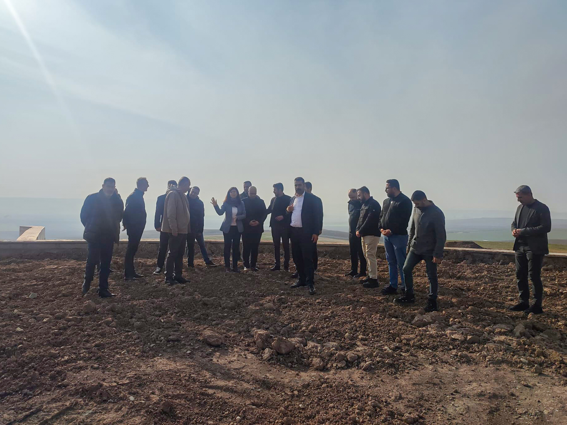 Kentte cenaze hizmetlerinin daha hızlı, düzenli ve sistemli yürütülmesi amacıyla planlanan yeni mezarlık alanına ilişkin Eşbaşkanlar Serra Bucak ve Doğan Hatun, Fen İşleri Dairesi Başkanlığı yetkililerinden proje hakkında bilgi aldı. İncelemeler sırasında, alanın teknik altyapısı, planlanan yapılar ve uygulama sürecine dair değerlendirmeler yapıldı.