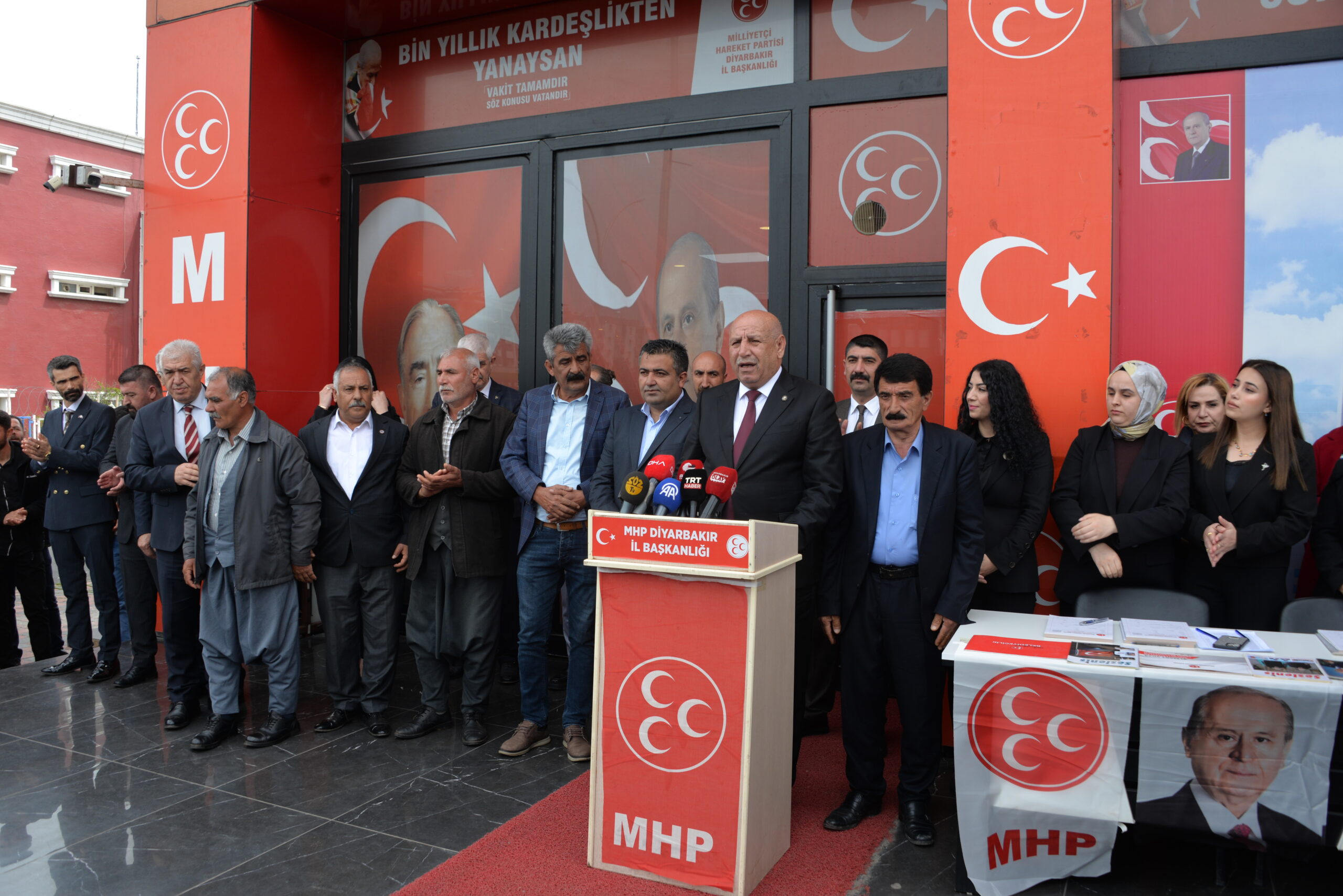 Törende açıklamalarda bulunan Başkan Arslan; “Milliyetçi Hareket Partisi Diyarbakır'da 17 ilçe teşkilatıyla faal durumdadır. Milliyetçi Hareket Partisi Diyarbakır'da vatandaşa yönelik siyasetini geliştirmiş ve Diyarbakır'da 50 yıldır 3, 4 ve 5’inci katlarda siyaset yapar, vatandaşın da uğrayamadığı bir teşkilat yapımız vardı. Ekibimle birlikte Milliyetçi Hareket Partisi, şu anda gördüğünüz gibi vatandaşın rahatlıkla uğrayabileceği bir mekan haline, bir teşkilat haline getirip ve Diyarbakır'da var olduğumuzu hissettirdik. Milliyetçi Hareket Partisi olarak tüm ilçelerde yapmış olduğumuz faaliyetler, partimize siz değerli vatandaşlarımız tarafından teveccüh ile karşılanmıştır” dedi.